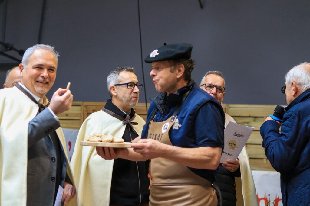 C’est là que tout commence, et que tout fait sens. Sous la halle, les charcutiers mazamétains ont dressé leurs stands avec cette fierté tranquille des artisans qui n’ont rien à prouver, sinon le meilleur d’eux-mêmes. Dès les premières heures, la foule s’est pressée — fidèles de longue date et curieux de passage mêlés — pour goûter, comparer, questionner, acheter. Entre un producteur et son client, quelques mots échangés au-dessus d’une tranche suffisent à tisser ce lien invisible qui donne sa profondeur aux terroirs vivants. Le Melsat de Mazamet ne se définit pas : il se partage.